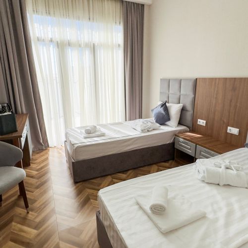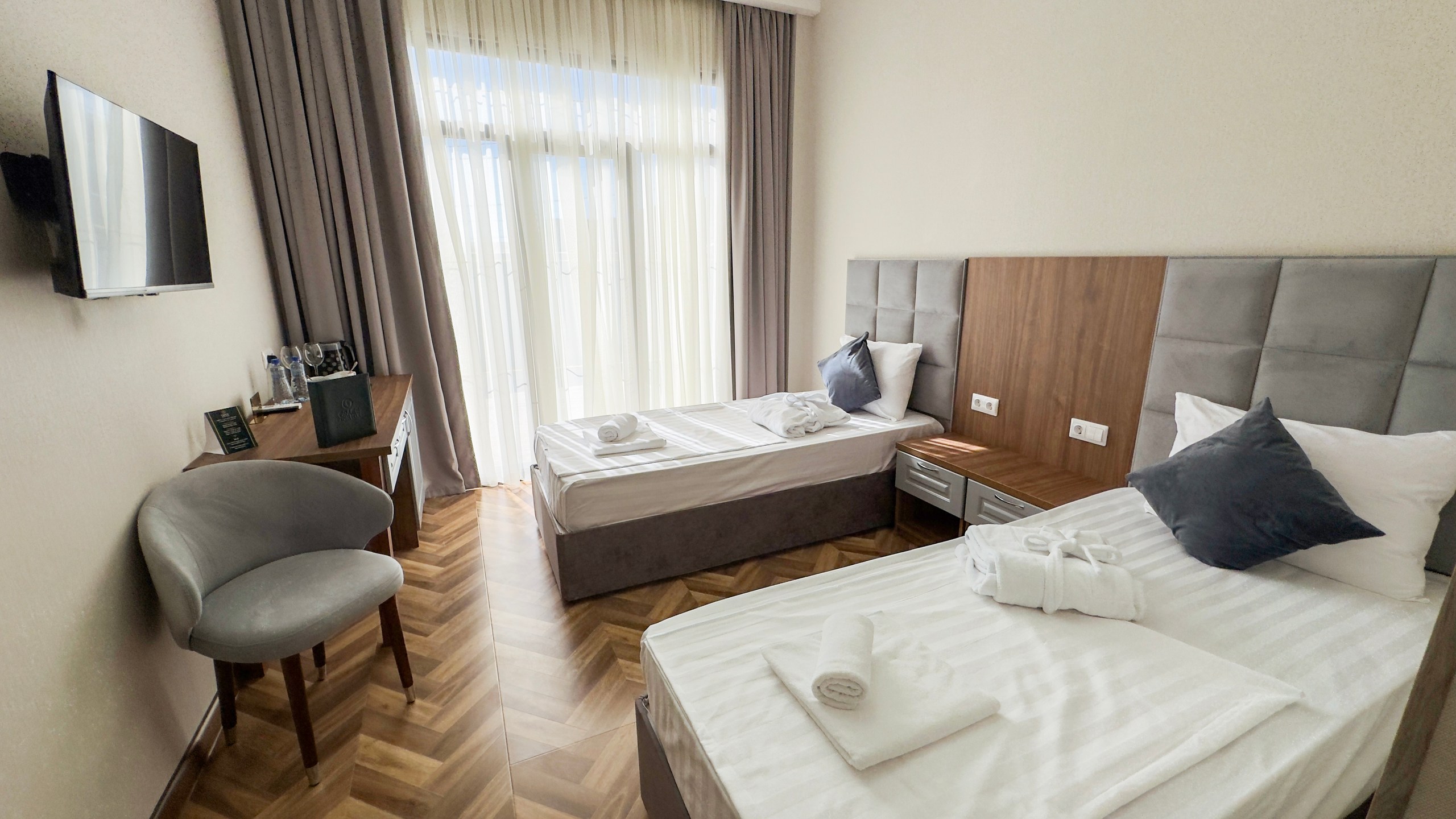 В 3-этажном корпусе находятся 29 современных номеров. Комнаты полностью меблированы, предусмотрен телевизор, кондиционер и мини-холодильник. В ванной комнате оборудована душевая, гостям предоставляются полотенца и гигиенические средства.